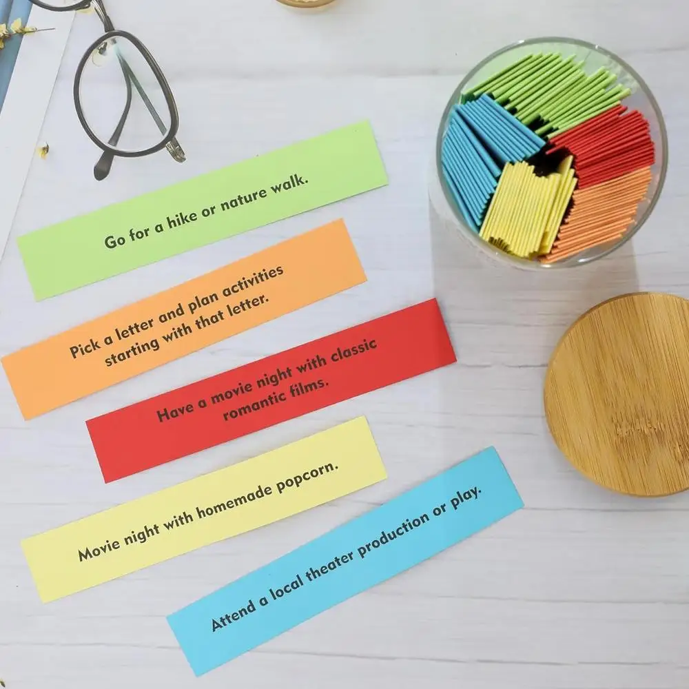 The jar includes a diverse range of activities, from cozy indoor dates to adventurous outdoor experiences, ensuring that your dates remain exciting and fresh.